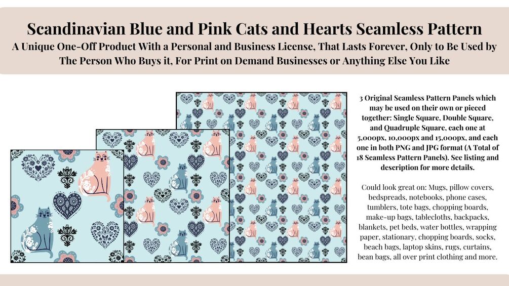 This product contains 18 seamless pattern panels, that you can use on their own, or piece together seamlessly, to cover a larger space, and we have given you them in all the sizes you could need, in both a PNG and a JPG.